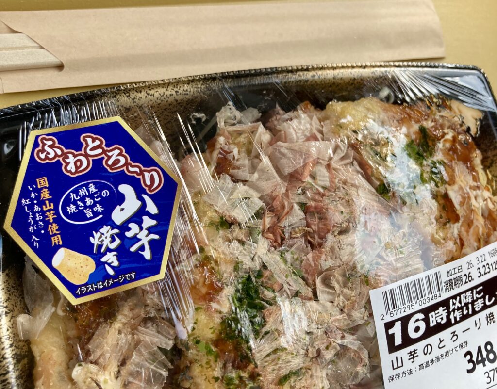 山イモのとろーり焼きと品名が入ったお惣菜。ズッシリ重く、量はありそう。フライパン1枚位の大きさを4当分したような感じ。この1品で充分そうです。