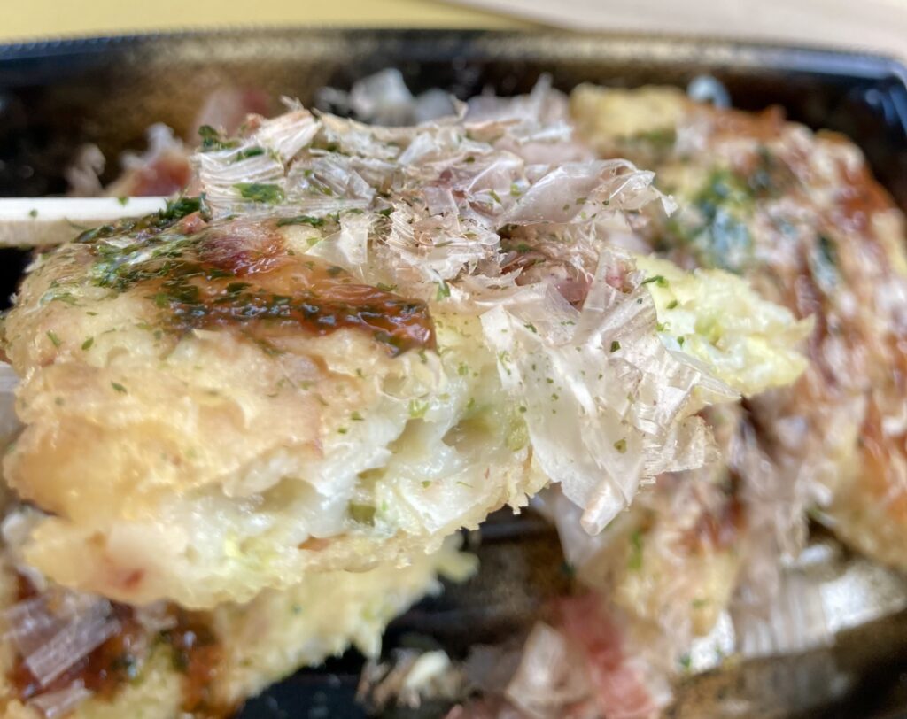 中は本当にとろーり!冷めた状態でも、賞味期限が1日切れてる状態でもとても美味しい。ふわふわで山芋の旨みもしっかり効いてる。ソース類がもう少しかかってたらな。家だったら追いソースで間違いない美味しさでしょう。