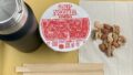 晩ごはんがスーパーのお惣菜でした。で、なんか1個余ったのがありました。賞味期限は1日切れています。冷蔵庫に入れて置いたので大丈夫だろう…ということで今日の昼ごはんはこれです。