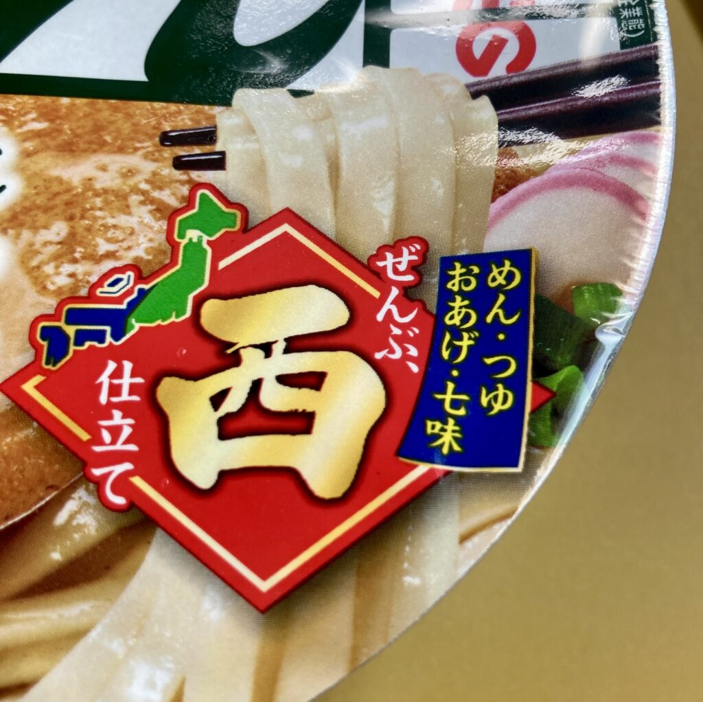 どん兵衛は西仕立て。西のどん兵衛のスープは、薄口醤油がベースで、ダシの味を強めに出しているのが特徴です。少し甘めに仕上げています…たぶん。