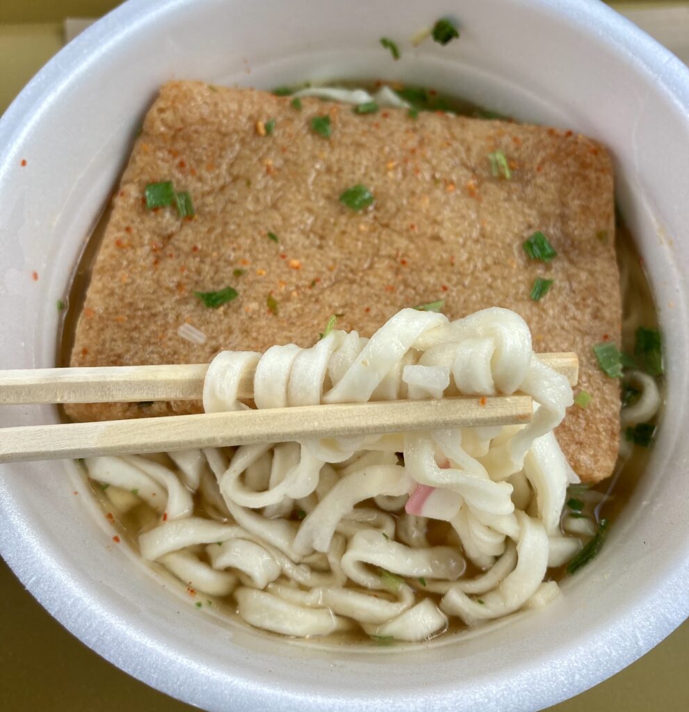 どん兵衛指定の5分の待ちで、仕上がりは、少し麺は硬いなぁという感じ。僕はこれくらいが好きです。持参の水筒のお湯でもしっかりカップ麺は作れます。電気ポット直の仕上がり程はありませんが。